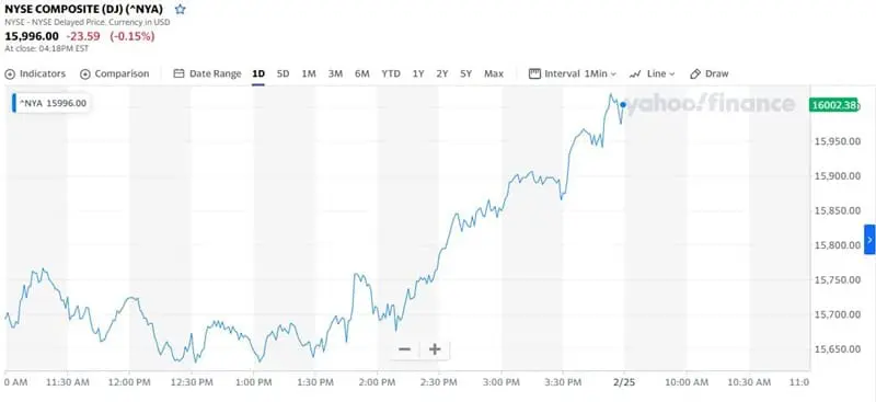 Both the Nasdaq Composite and the S&P 500 tumbled during a morning sell-off after Putin’s announcement; Nasdaq suffered a 3% drop at the open, whereas the S&P 500 dipped 1.5%. The Dow Jones Industrial Average, too, plunged more than 800 points during intraday trading.