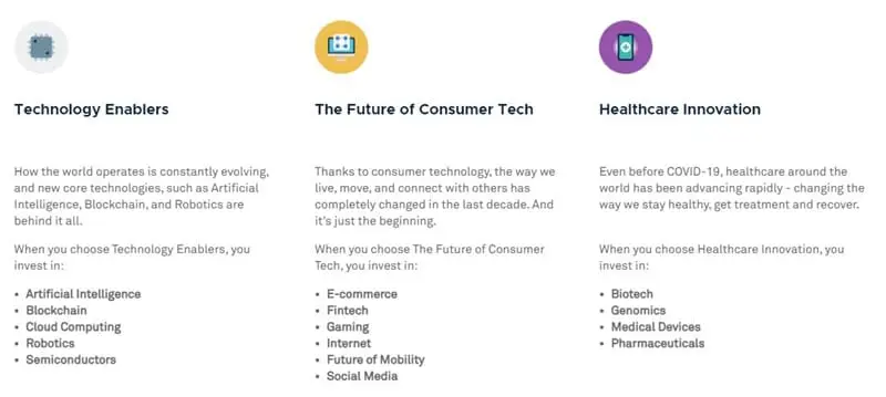 Under StashAway’s Thematic Portfolio offering, there are three themes that you can choose from, namely: