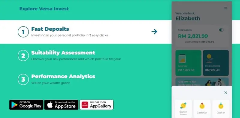Versa has introduced a new investment solution, Versa Invest, which is said to provide users with “higher potential returns” than its existing cash management solution, Versa Cash. Managed by asset management firm, Affin Hwang, it offers three portfolios to meet the varying risk appetite of its users.