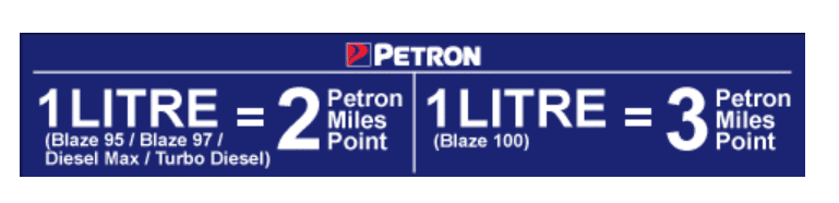 Earning points with the Petron Miles Privilege Card is a breeze with 2 Petron Mile Points awarded for every litre of petrol purchased. For example, the average Perodua Myvi requires roughly 36 litres of petrol for a full tank, so a full pump of RON95 gives you 72 Petron Miles Points.
