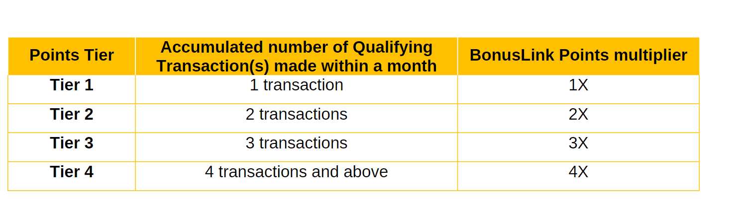 | Special Campaign Point Earning Ratio | Up to 4x Bonus Point Multiplier until 31 July 2021 | N/A | Up to 3x Bonus Points until 30 June 2021