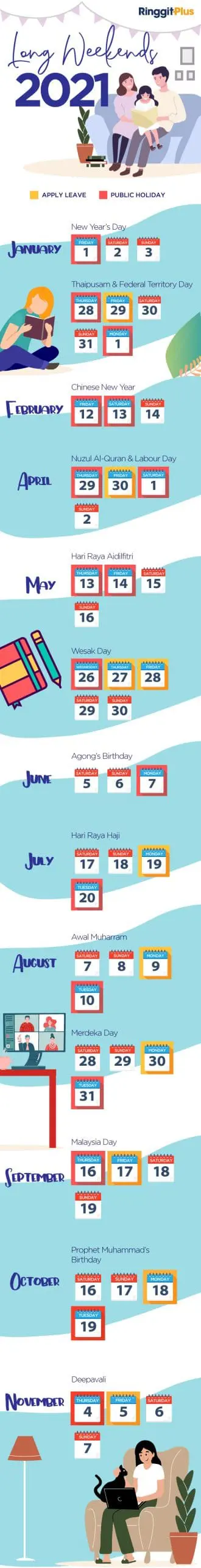 Once again, we help you plan your annual leave by highlighting which public holidays fall near the weekends – so that you can enjoy a longer break just by applying for one or two days of leave. Of course, while we may not be able to travel as much this year due to the ongoing Covid-19 pandemic, we still need to take some time off from work to rest and recharge.
