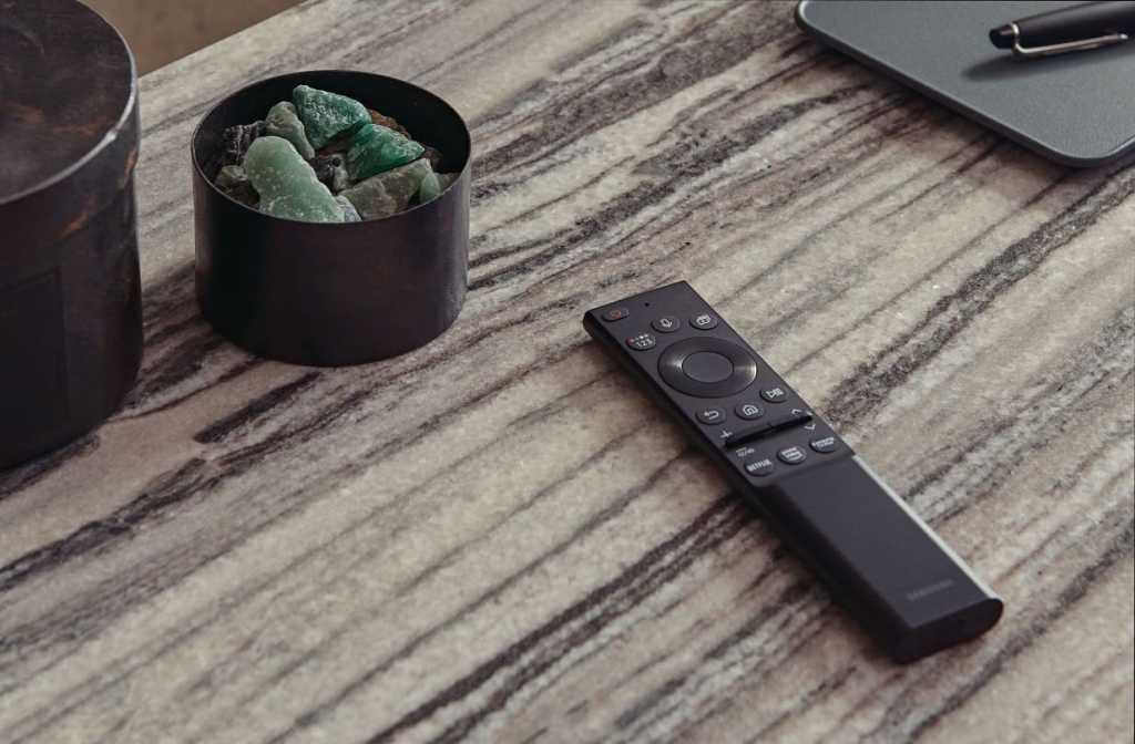 On top of that, all 2021 Samsung TVs will be equipped with a Solar Cell Remote Control that not only uses a rechargeable battery, it is also made from 24% recycled plastic. These remote controls, which can recharge by indoor light, outdoor light, and USB, are projected to save a staggering 99 million AAA batteries over seven years.