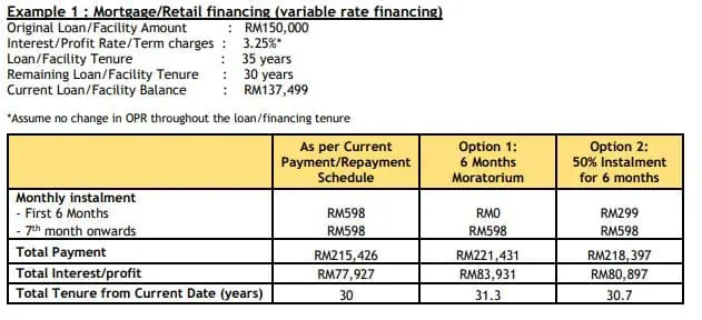 Here are some examples by several banks on interest calculations to give borrowers a clearer picture of the additional financing costs (if any) should they take up the loan moratorium: