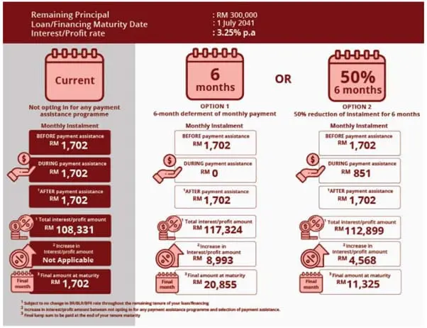 All banks have emphasised that taking the loan moratorium will incur additional financing cost, since interest will still accrue during the deferment period. As mentioned earlier by Finance Minister Tengku Datuk Seri Zafrul Abdul Aziz, accrued interest and any penalty charges will not compound during the moratorium period. Similarly, the tenure of the loan will also be increased based on your existing loan – some borrowers may see their tenures extended by six months, while others may have longer extensions.