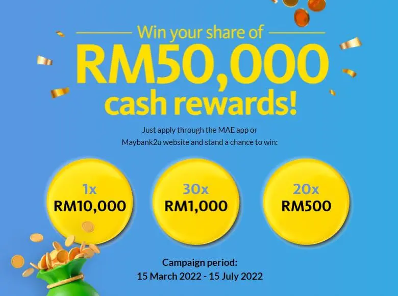 In celebration of the launch of Maybank Personal Digital Financing, Maybank is currently running a campaign that allows customers who apply for loans via the solution to win cash prizes worth RM50,000. This includes a grand prize of RM10,000. The campaign is set to run until 15 July 2022.