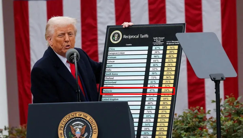 President Donald Trump had on Wednesday announced that the United States of America will implement a 10% tariff on all imports on all countries, and higher duties on some countries, including Malaysia at 24%. These reciprocal tariffs will start on 9 April 2025.