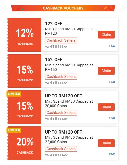 With that said, here are the bank partner vouchers that you can claim on Shopee, offering rebates of up to RM120 as well. They are to be used between 11 to 14 November.