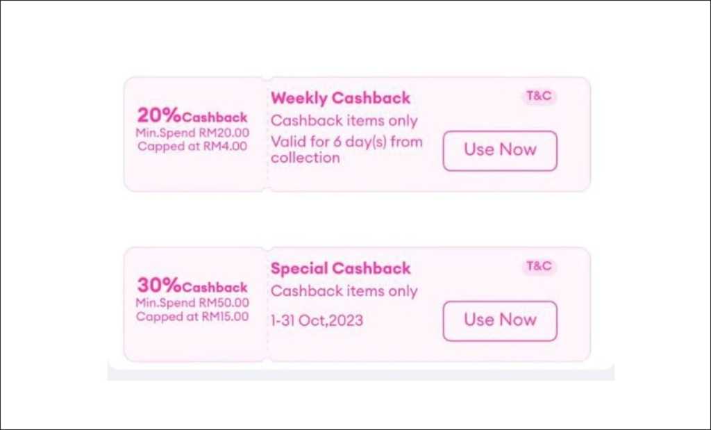 These vouchers are limited in quantity, and can only be collected during specific times of the week or month – as compared to the Everyday Cashback vouchers that are quite readily accessible since they refresh on a daily basis.