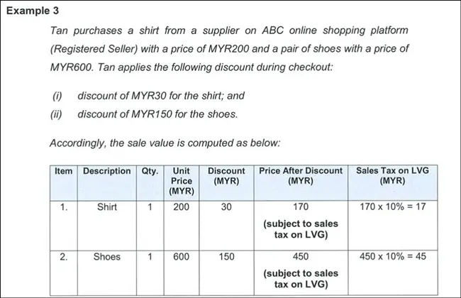 Additionally, RMCD also highlighted that if an item is sold at a discounted price instead of its original retail price, the LVG tax will be applied to the discounted price as the sale value: