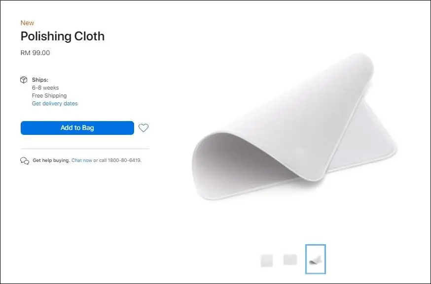 In the US, Apple’s polishing cloth is actually priced at US$19, which is equivalent to about RM79. Despite some major tech sites – such as Gizmodo and The Verge – voicing their incredulity about the price, it seems that people are still snapping up the item regardless. A recent report has indicated that initial supplies are now sold out until late November. This update is also reflected in Apple Malaysia’s website, where the product page states that the polishing cloth will only ship in about six to eight weeks. Earlier today, shipping was estimated to take place between four to five weeks.