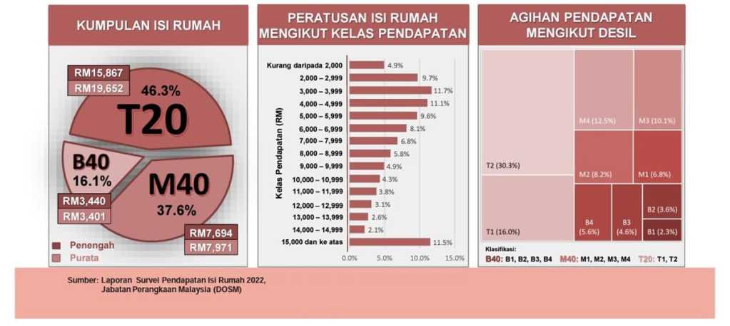 For context, the last Household Income Survey Report and Household Expenditure Survey (HIES) was conducted and published back in 2019. Among other things, HIES 2019 had spurred DOSM to introduce new income definitions for B40, M40, and T20 – with a total of 10 sub-categories – to allow for better implementation of targeted assistance programmes by the government.