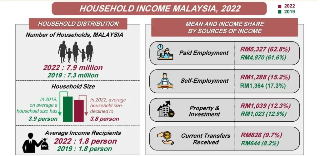 The average household income in Malaysia has increased by 2.4% from RM7,901 in 2019 to RM8,479 in 2022, said the Department of Statistics Malaysia (DOSM). This was revealed in the latest Household Income Survey Report and Household Expenditure Survey Report (HIES) 2022 – surveys which are conducted twice every five years.