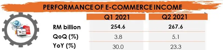 Malaysia’s income from e-commerce saw a 23.3% year-on-year (YoY) growth in the second quarter of 2021 (2Q21), said the Department of Statistics Malaysia (DOSM) in its latest report on the performance of services sector and e-commerce income.