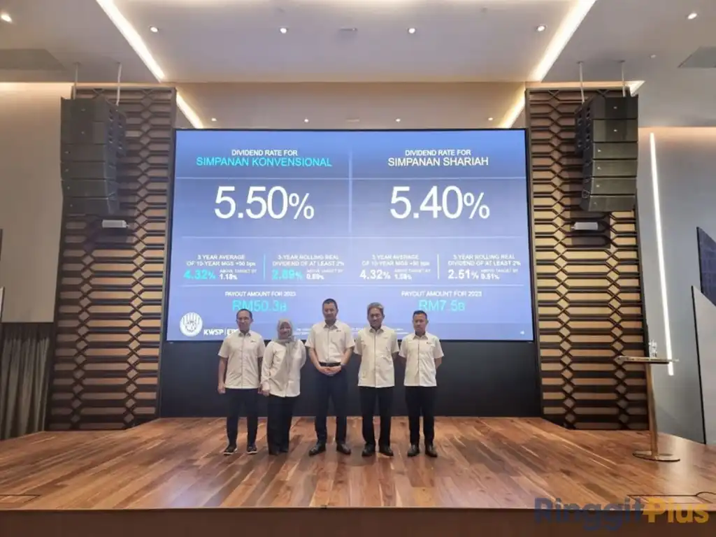 The Employees Provident Fund (EPF) has declared a dividend of 5.50% for its conventional savings, with a total payout of RM50.33 billion, and 5.40% for its shariah savings, with its own total total payout of RM7.48 billion. This brings the overall combined payout amount for the financial year of 2023 to RM57.81 billion, benefitting more than 16 million EPF members.