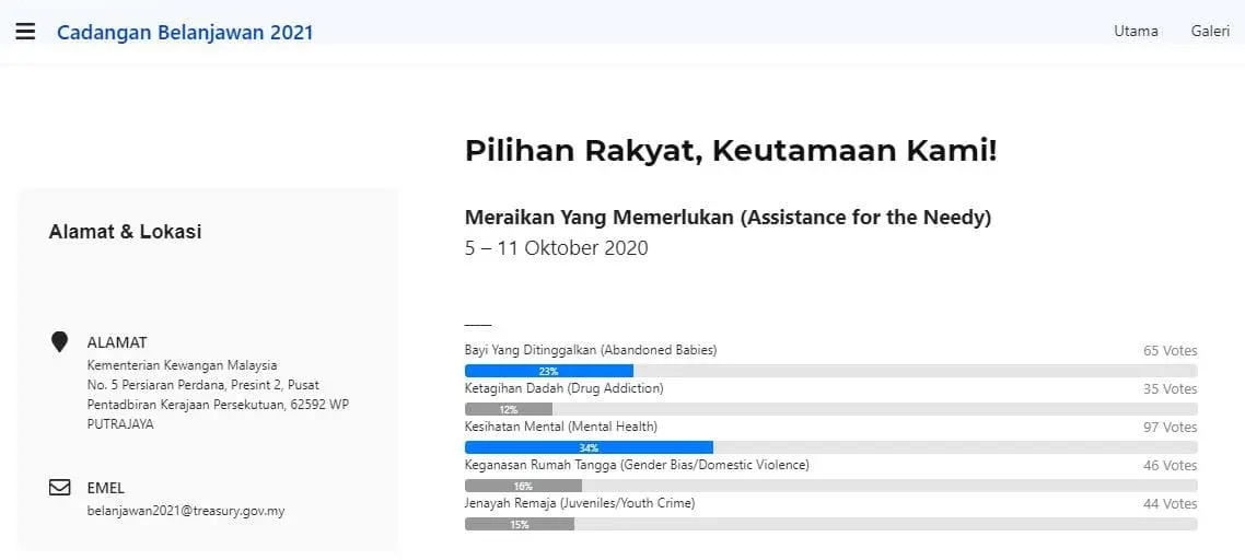 In a bid to adopt a participatory approach for the upcoming Budget 2021, the Finance Ministry has kickstarted a series of weekly polls on several issues to let the Malaysian public have its say in the national budget. The polls, which are already ongoing, will continue until 1 November 2020.