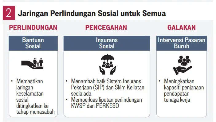 As for social assistance (protection), Datuk Seri Anwar said that various cash assistance programmes have already been put in place, including the Rahmah programme. But just like the pillar of social insurance, the people – especially those who are truly in need – will also benefit from more support.