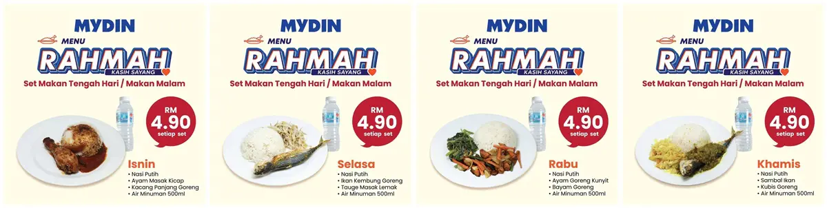 Today, the number of participating restaurants has grown to include some 12,000 mamak restaurants, 800 Indian restaurants, 500 tomyam stalls, and all Mydin outlets. Most of these F&B operators will indicate their participation through a dedicated Menu Rahmah sticker, but feel free to also ask any of the employees at the stores if you need clarification!