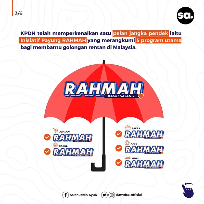 The Menu Rahmah initiative is actually also part of the Payung Rahmah short-term programme, which includes other initiatives such as Bakul Rahmah, Kafe Rahmah, Jualan Murah Rahmah, and Barangan Rahmah.