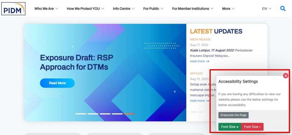 Aside from introducing the financial literacy modules, PIDM had also revamped its website earlier this year to make it more accessible for individuals with visual impairments, with the ability to adjust the font size and to grayscale the page.