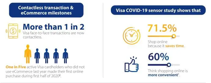 On top of that, Visa also noted that one out of five active Visa cardholders who were not e-commerce customers last year made their first online purchase during the first half of 2020. 30% of the expenses by these cardholders are made up of essential services – such as food, groceries, pharmaceutical and health products, as well as utilities. This is followed by retail shopping at department stores and retail outlets. Meanwhile, purchases for business categories and professional services contributed to 19% of the online spend by cardholders who are new to e-commerce.