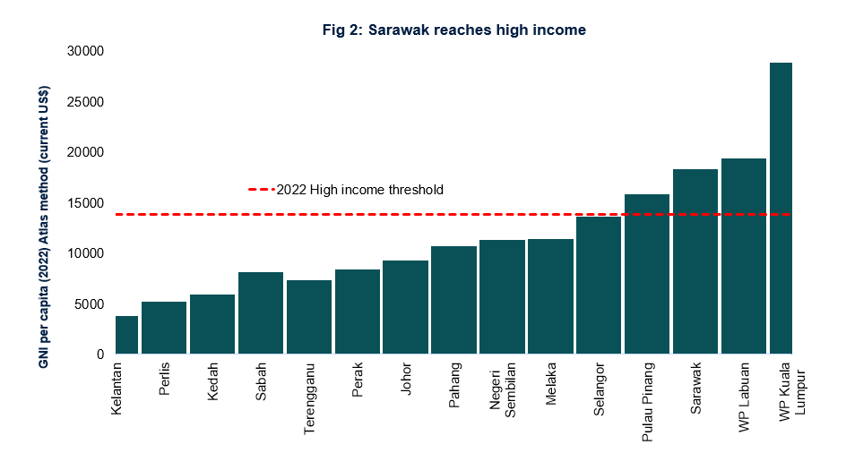 The World Bank said that Sarawak has achieved high income status as a state, based on its gross national income (GNI) per capita of more than US$13,205 (RM61,442).