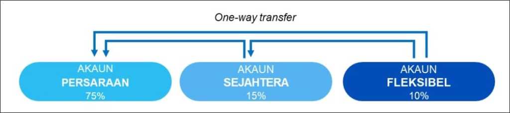 | RM3,000 and above | – Ten out of thirty of your Akaun Sejahtera balance will be transferred to Akaun Fleksibel – Five out of thirty of your Akaun Sejahtera balance will be transferred to Akaun Persaraan – Fifteen out of thirty of your Akaun Sejahtera balance will be retained |