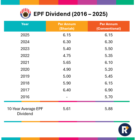 The Employees Provident Fund is a sovereign pension fund which provides retirement incentives for members through managing their savings. With a total of 16.07 million members (as of December 2023), the EPF invests members’ collective contributions in approved financial instruments for more favourable returns. By law, the EPF is required to provide a guaranteed dividend of at least 2.5% a year, but has consistently managed to deliver significantly higher rates since 1960. But how has the EPF dividend rates changed in the last decade?