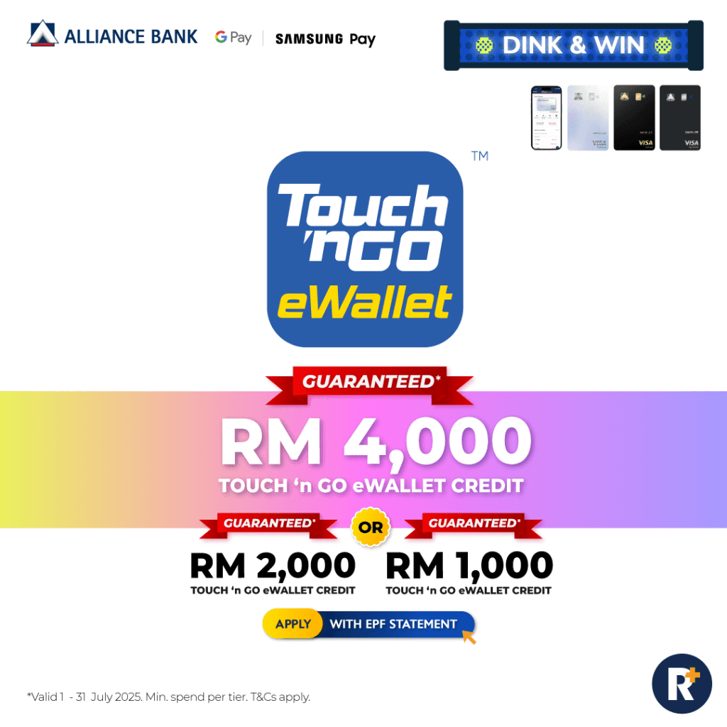 The cash prizes continue! Apply for an Alliance Bank Credit Card and you could be walking away with guaranteed RM4,000 Touch ‘n Go eWallet Credits, RM2,000 Touch ‘n Go eWallet Credits, RM1,000 Touch ‘n Go eWallet Credits OR RM500 Touch ‘n Go eWallet Credits.