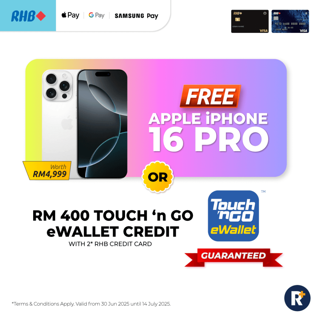 Stand a chance to win the iPhone 16 Pro when you apply for a RHB Credit Card.