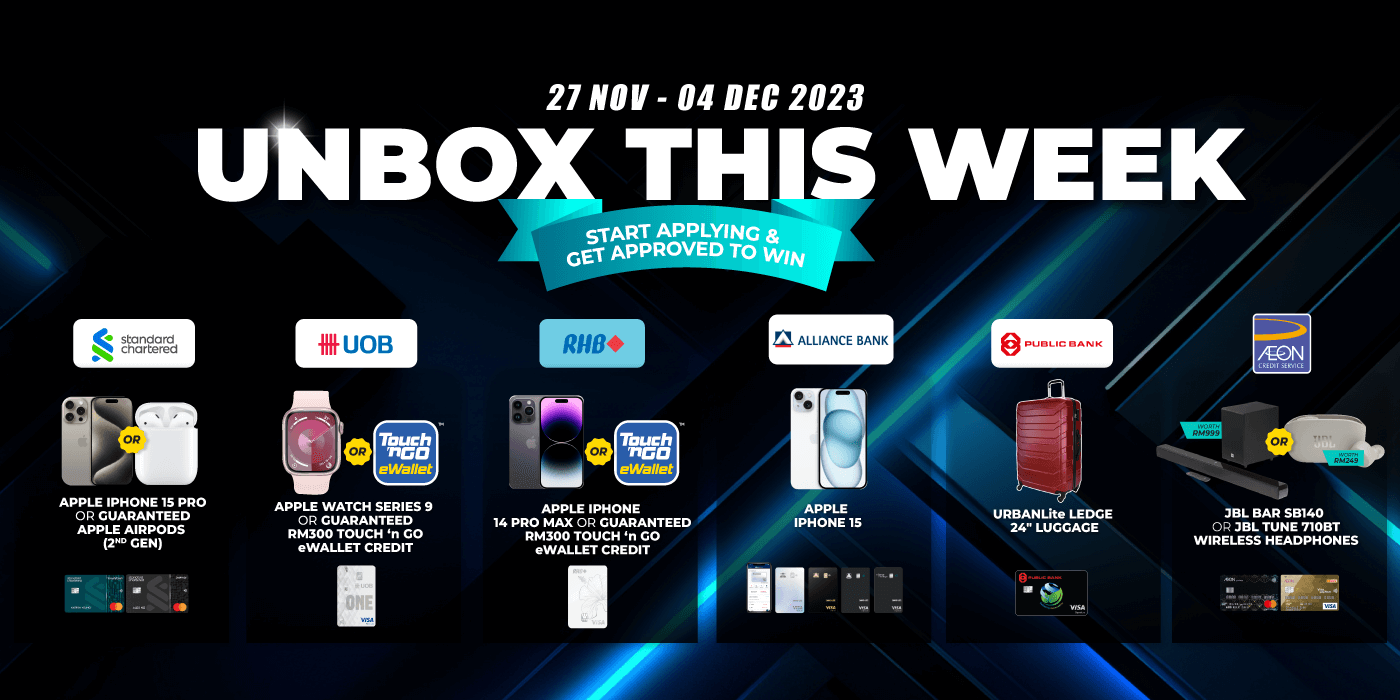 For those who are new to this campaign, Unbox This Week is a weekly event where we present to you fantastic weekly flash deals from our featured bank partners. All you need to do is apply for selected credit cards from these banks of the week through RinggitPlus and you’ll take home some great prizes.