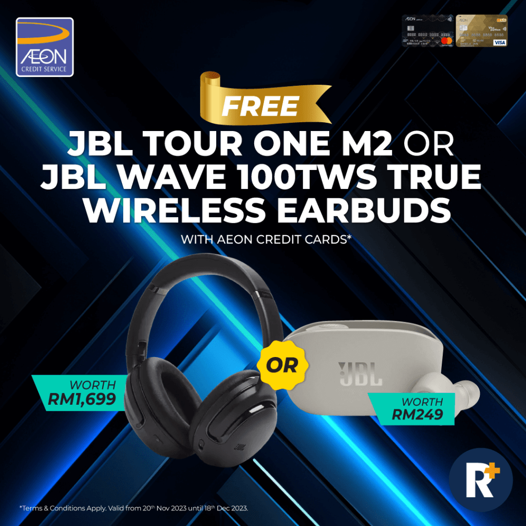 Meanwhile, the JBL Wave 100TWS is guaranteed to be yours when you apply for an AEON Gold Card or AEON Platinum Card. Easily control your sound trigger voice assistants with this comfortably designed pair of wireless earbuds.