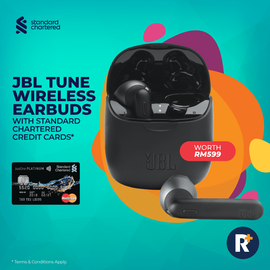 Score a pair of JBL Tune Earbuds worth RM599 when you apply and get approved for selected Standard Chartered credit cards.