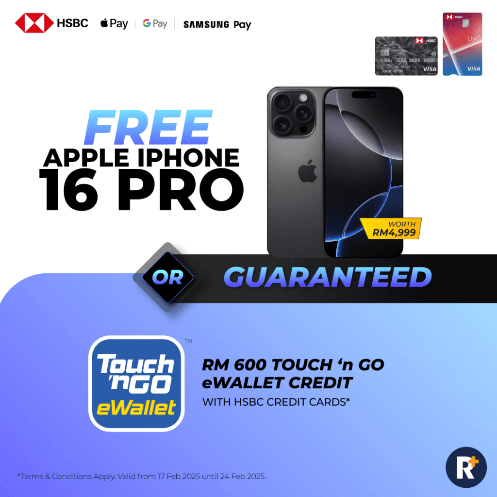 The iPhone 16 Pro offers high performance and a stunning display for both work and entertainment – ideal for those constantly on the move! All you’ll need to do is apply for an HSBC Credit Card this week to get your guaranteed gift. Don’t forget to activate and spend a minimum of RM1,000 on your new card within 60 days upon gaining approval to be eligible for this gift. That said, do note that current cardholders and applicants who were denied within six months prior to this campaign, as well as those who have cancelled their HSBC Credit Cards within six months prior to this campaign are not eligible for our campaign. Otherwise, you can apply for your HSBC Credit Card here.