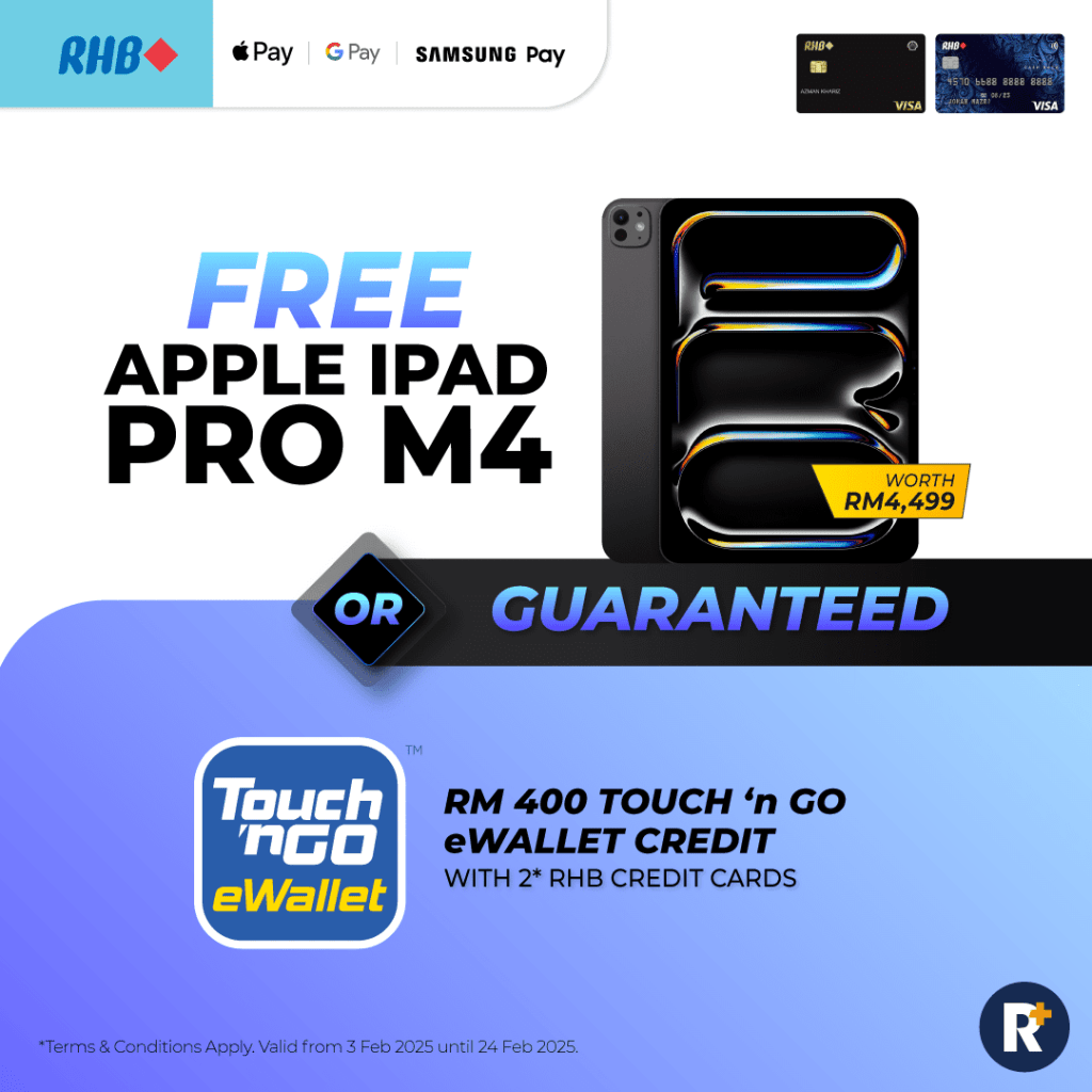 What’s this? Another chance to win an Apple product awaits! Stand a chance to win the iPad Pro M4 when you apply for a RHB Credit Card.