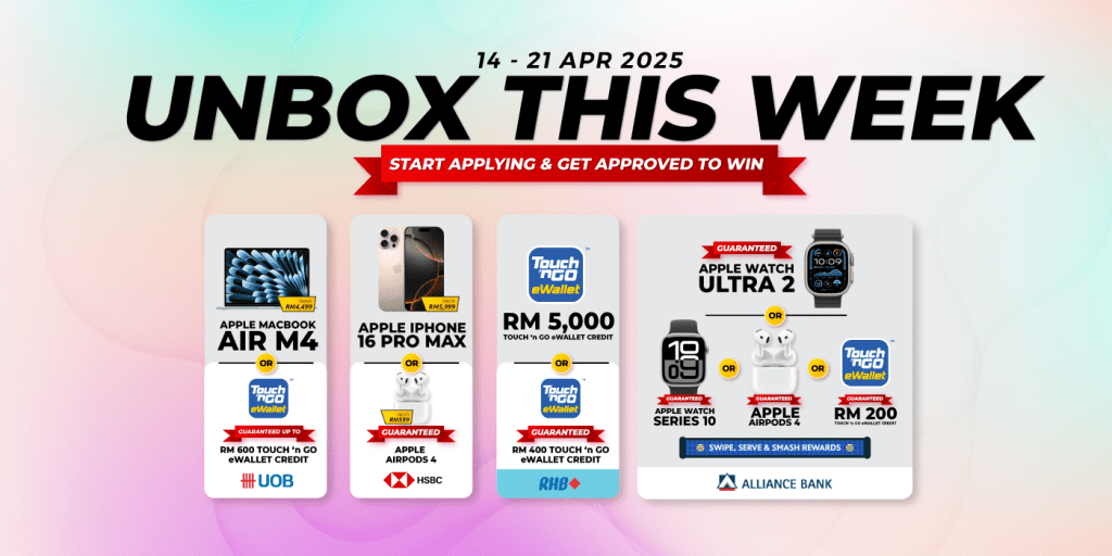 This week, stand a chance to win the the iPhone 16 Pro Max, RM5,000 Touch ‘n Go eWallet Credits and more when you apply for a credit card via RinggitPlus.
