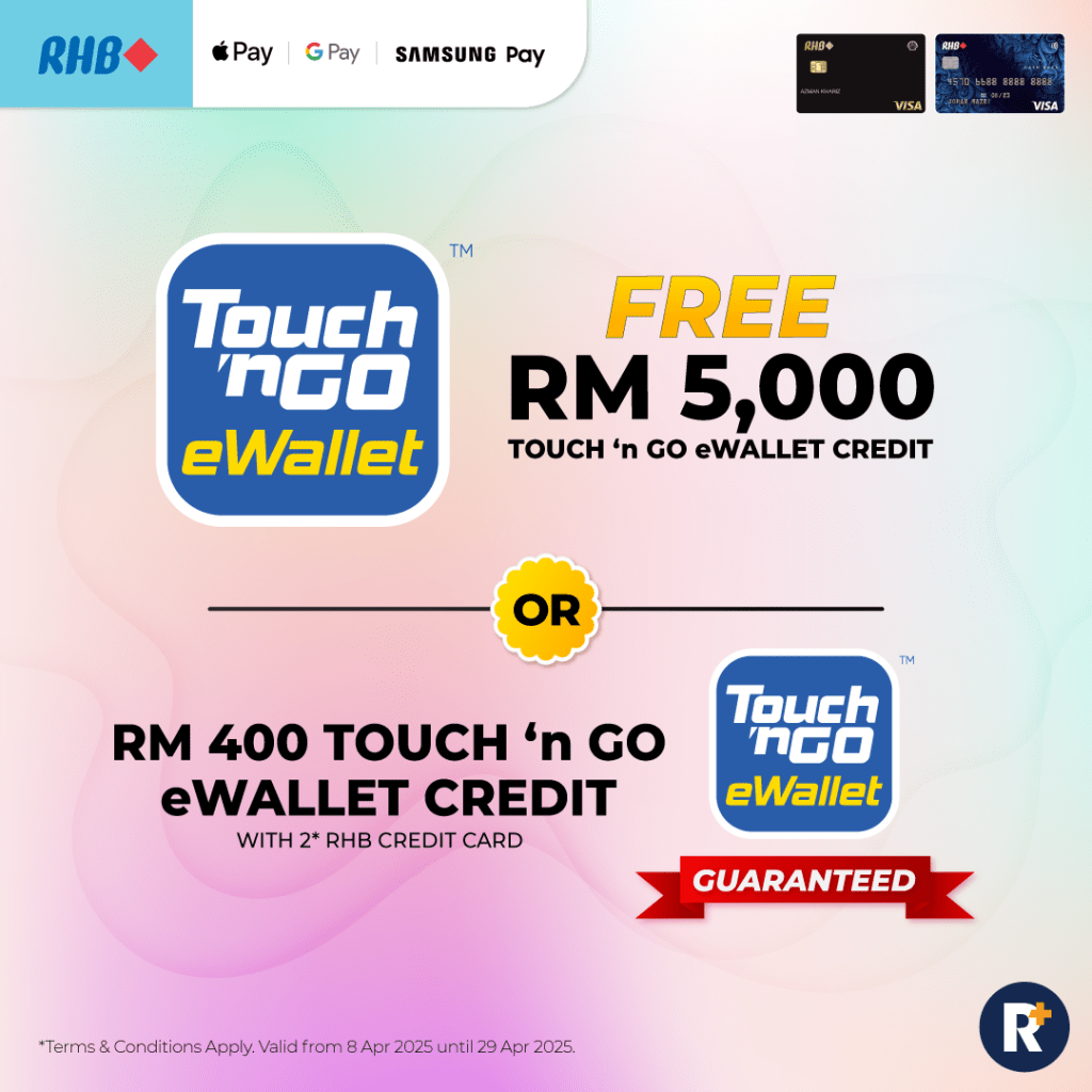 Your next big win could be just a credit card away. Apply for a RHB Credit Card this week and you could take home RM5,000 in Touch ‘n Go eWallet Credits!