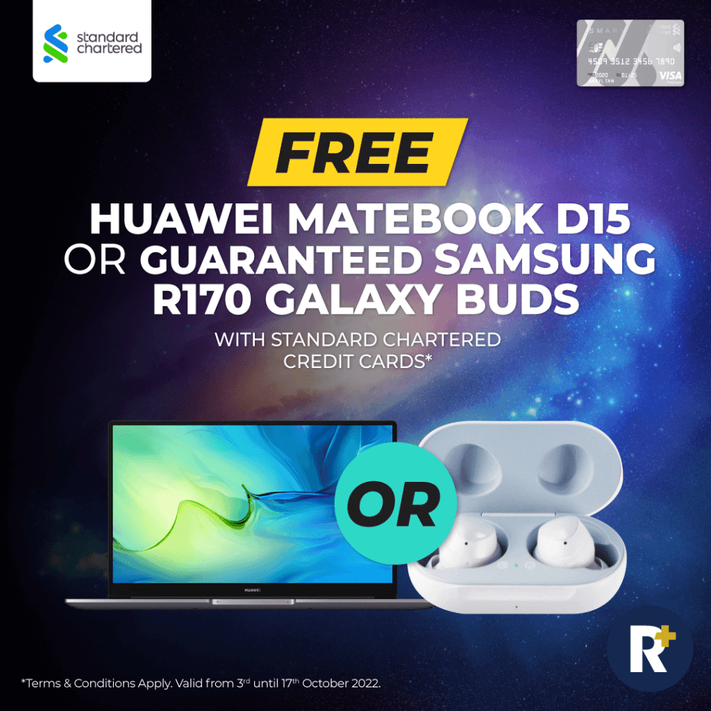 This week, you could win a brand new laptop with a Standard Chartered Credit Card! The HUAWEI MateBook D 15 is lightweight at just 1.53kg, offers accelerated performance with its 10th gen Intel® Core™ i5 processor, and easy one-tap sharing between devices thanks to HUAWEI Share.