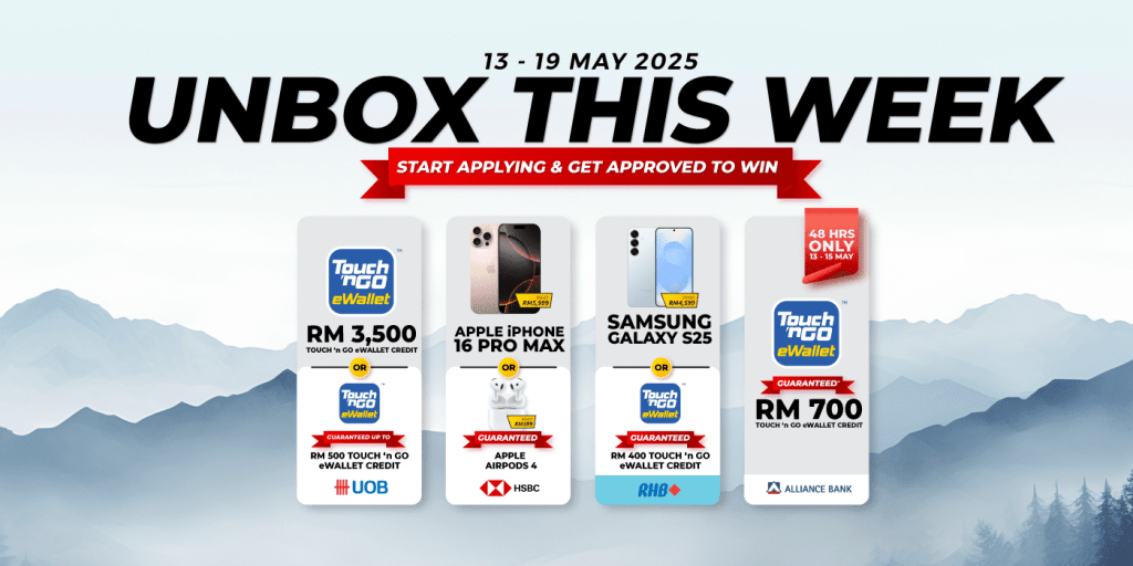 Unbox This Week is back! Apply for a credit card via RinggitPlus and you could walk away with a brand-new iPhone 16 Pro Max, Samsung Galaxy S25, or up to RM3,800 in Touch ’n Go eWallet Credits guaranteed!