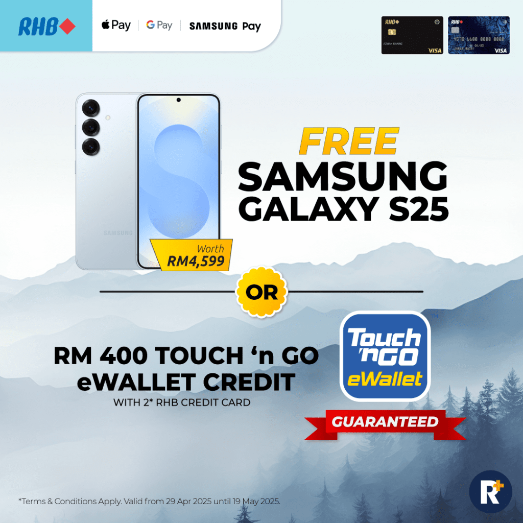 Stand a chance to win the Samsung Galaxy S25 when you apply for a RHB Credit Card.