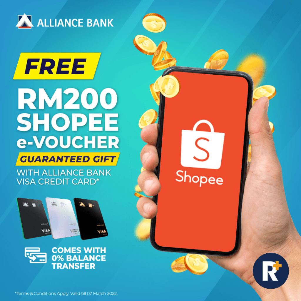 We’re giving away a guaranteed RM200 Shopee e-voucher when you apply for a new Alliance Bank Credit Card. Get some extra shopping vouchers to spend on groceries, essentials, and more! Upon approval, you just have to activate to meet the requirements of the campaign and be eligible to get the prize.