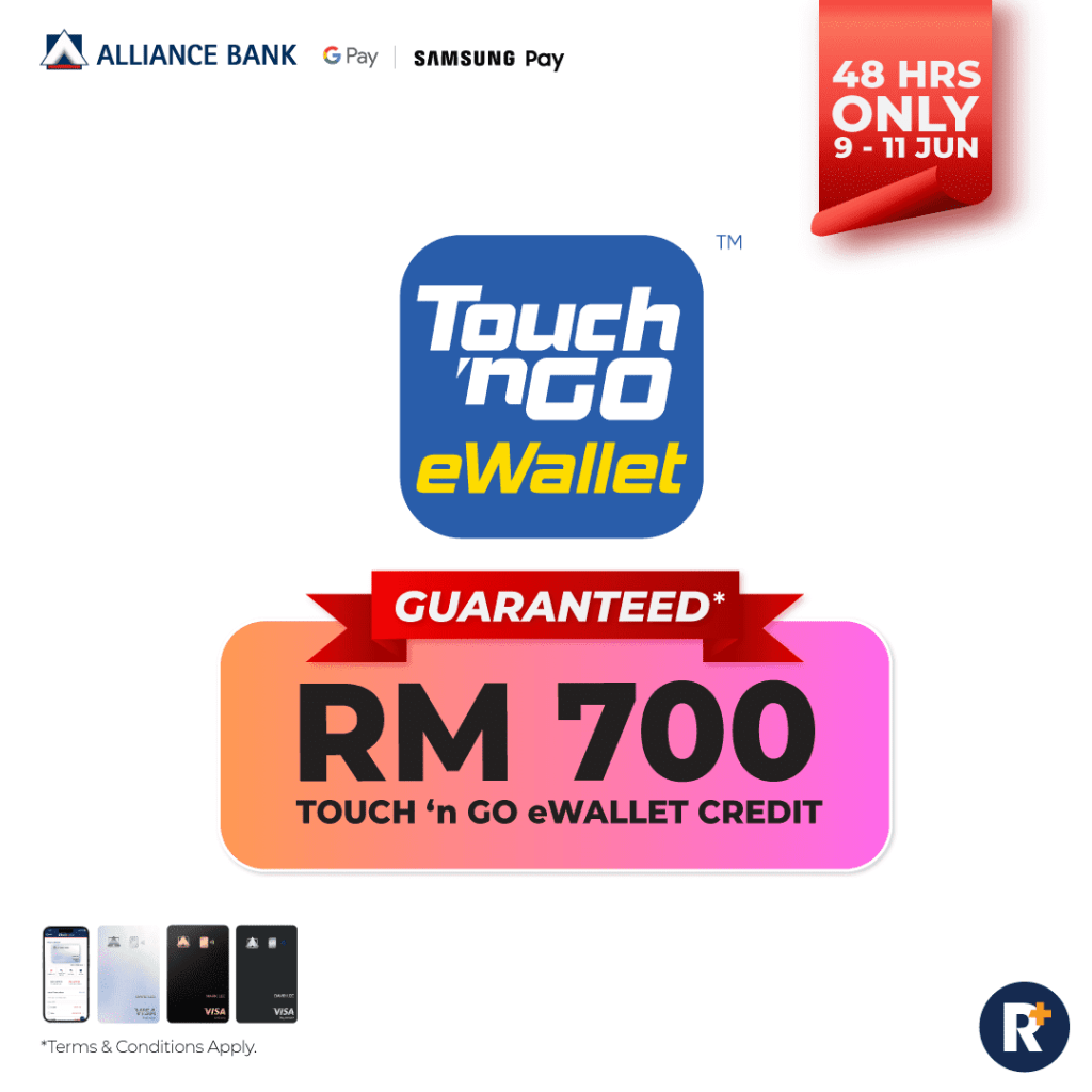 For 48 hours only! Get RM700 Touch ‘n Go eWallet Credits guaranteed when you apply for an Alliance Bank Visa Virtual credit card.