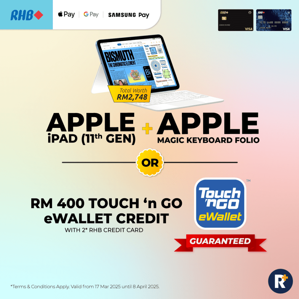 Apply for an RHB Credit Card for your chance to win BOTH the iPad 11th Generation (A16) + Magic Keyboard Folio!