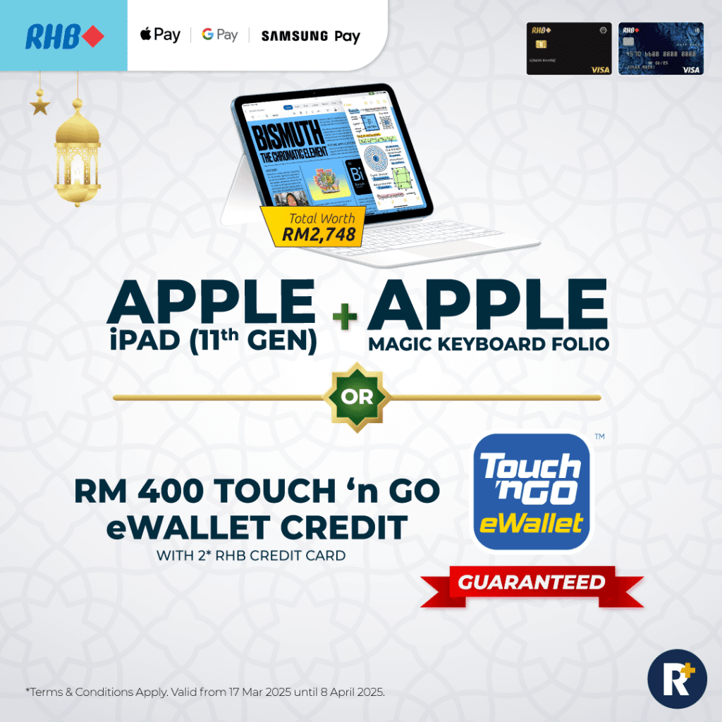 What’s this? A double prize! Stand a chance to win BOTH the iPad 11-inch (A16) and the Magic Keyboard Folio when you apply for a RHB Credit Card.