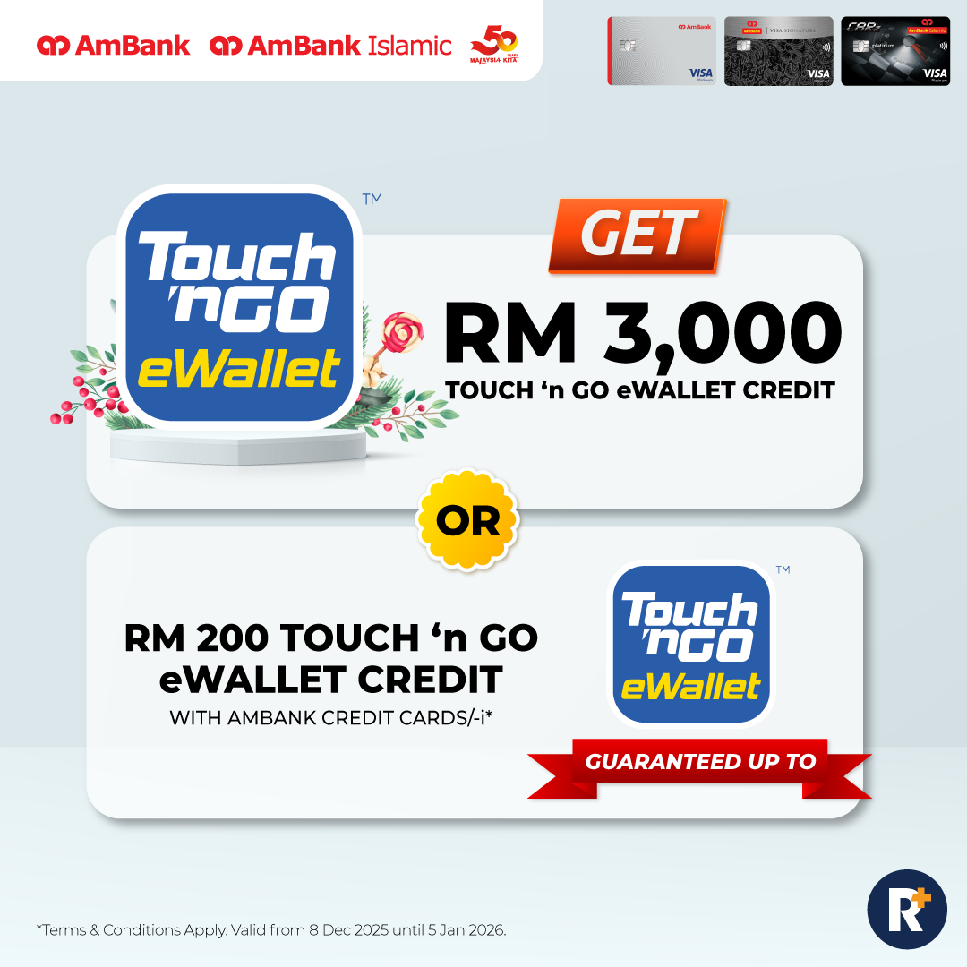 Apply for an Ambank Credit Card this week, and you could win RM3,000 in Touch ‘n Go eWallet credit.