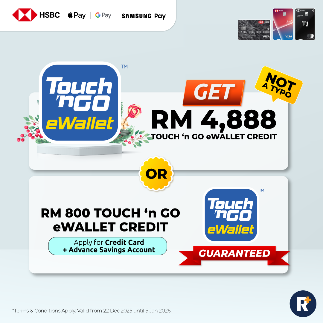 Even if you don’t snag the grand prize, you’ll still walk away with RM800 Touch ‘n Go eWallet credit guaranteed when you apply for the card with an HSBC Advance Account.