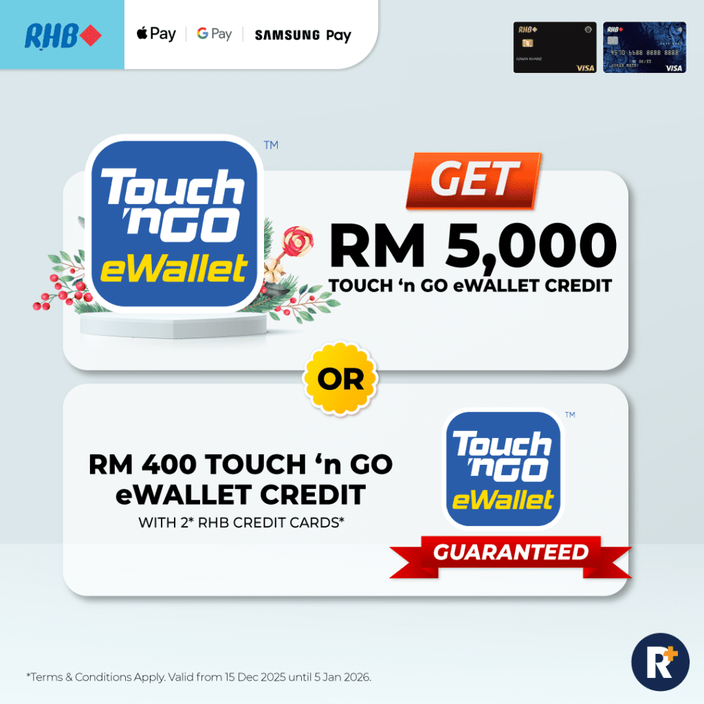 Cash prizes are always good news. Apply for an RHB Credit Card this week, and you could win RM5,000 in Touch ‘n Go eWallet credit.