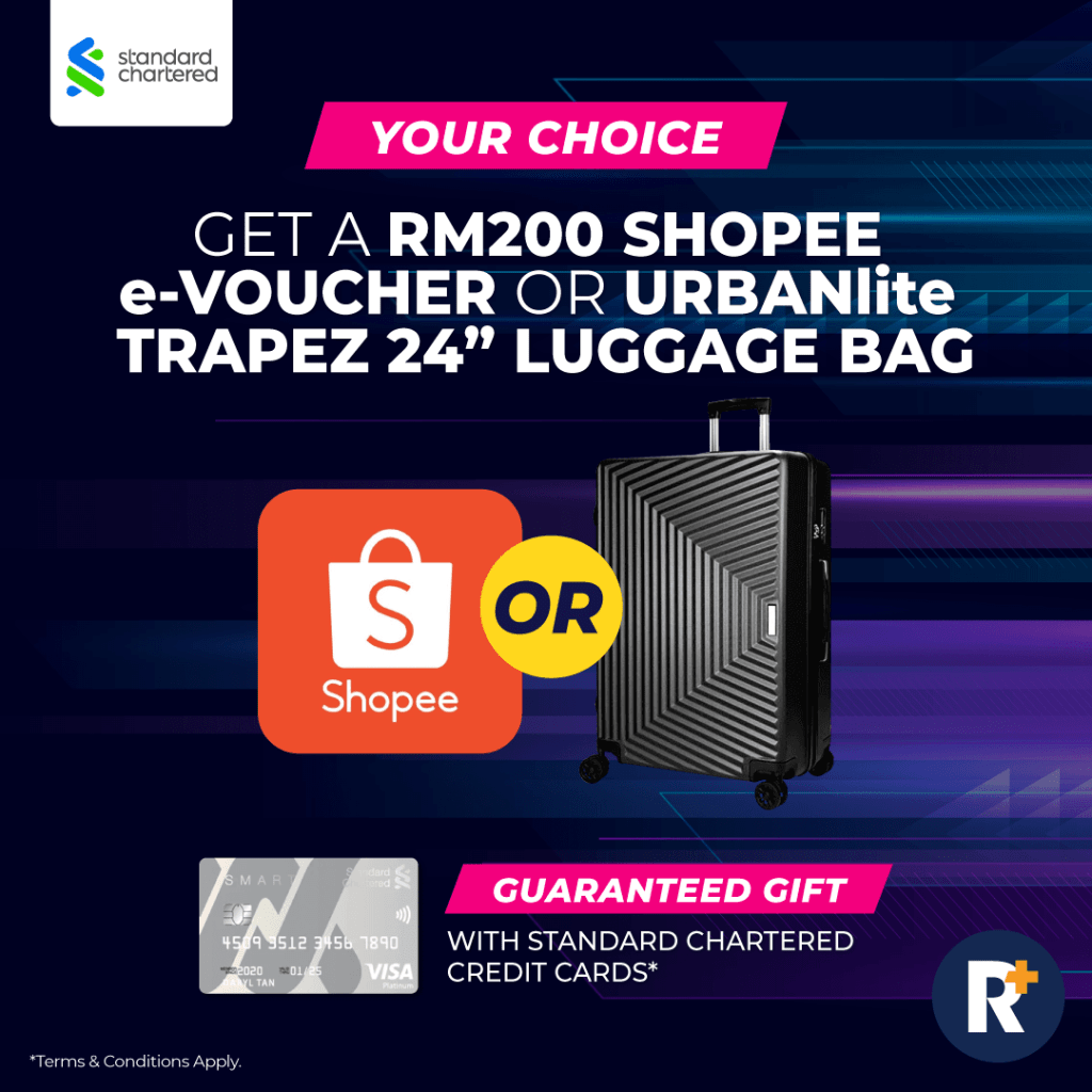 Standard Chartered continues to give ALL approved applicants a choice of two guaranteed gifts. Tick tock, shop o’ clock – choose the guaranteed RM200 Shopee e-Voucher so you get more to spend on myriad items on one of the largest online shopping platforms in Malaysia.