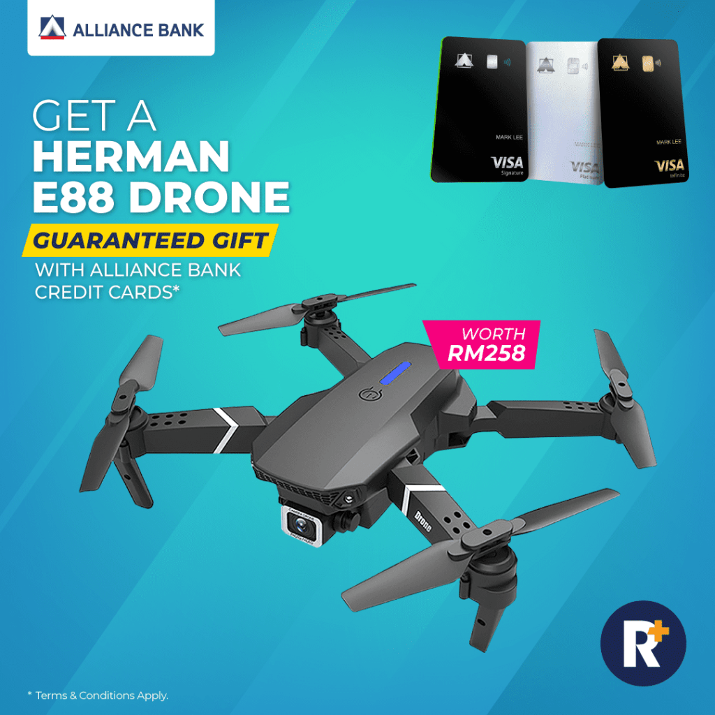 This week, we have Alliance Bank once again joining the party with a guaranteed gift – the Herman E88 Drone. This dual-camera drone comes with Wi-Fi FPV (First Person View) functionality that transmits video directly to your smartphones for easy usage.