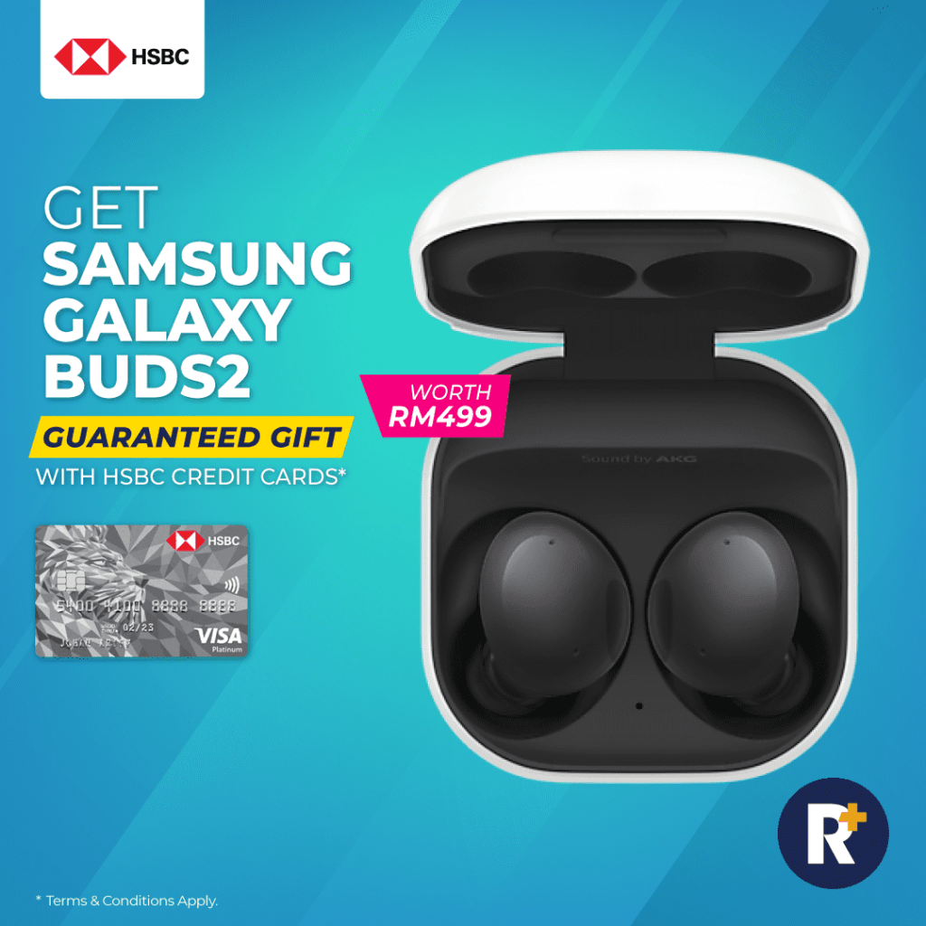 Hey, music lovers! We’re now presenting you with a guaranteed Samsung Galaxy Buds2 as your gift when you apply for a credit card with HSBC! Touted by Samsung as the lightest earbuds they’ve ever made, the stylish-looking Galaxy Buds2 comes with easier controls, unmatched comfort fit, Active Noise Canceling, and seamless connectivity to your phone and watch.